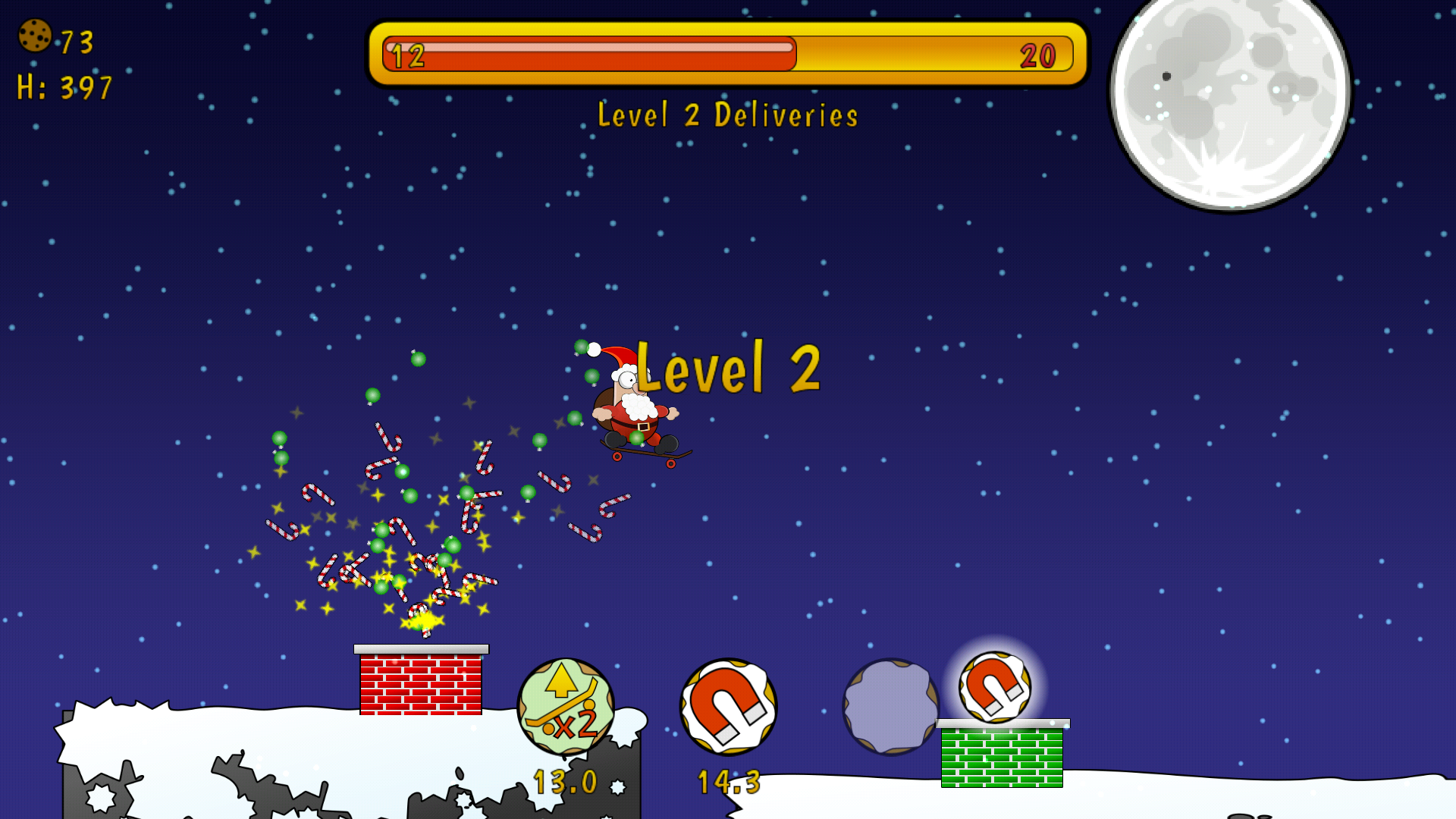 In the screenshot below, there is a typical scene from Santa Skate. There is a mixture of game world sprites and Scene2D UI elements. I had already gone through efforts to minimize draw calls/texture bindings on the game world, but I hadn't put much thought into the UI layer.
